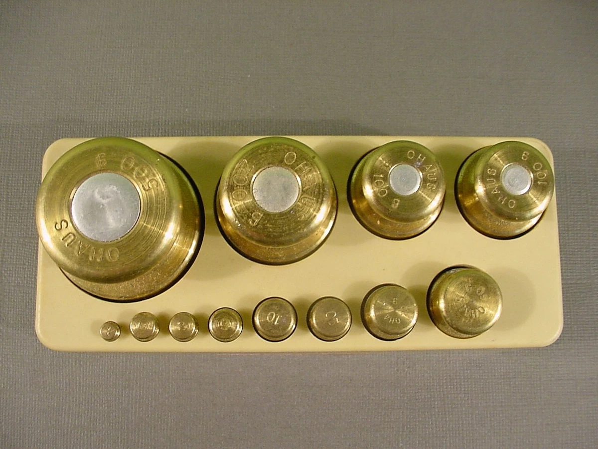 12 Piece Vintage Ohaus Brass Calibration Weight Set 1 G To 500 Gram With Holder Ebay